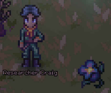 - Gideon has been banned from fieldword after a nasty mix-up. He's asked you to speak with Researcher Craig about a rare flower that only blooms under a full moon: the Nyxanthium